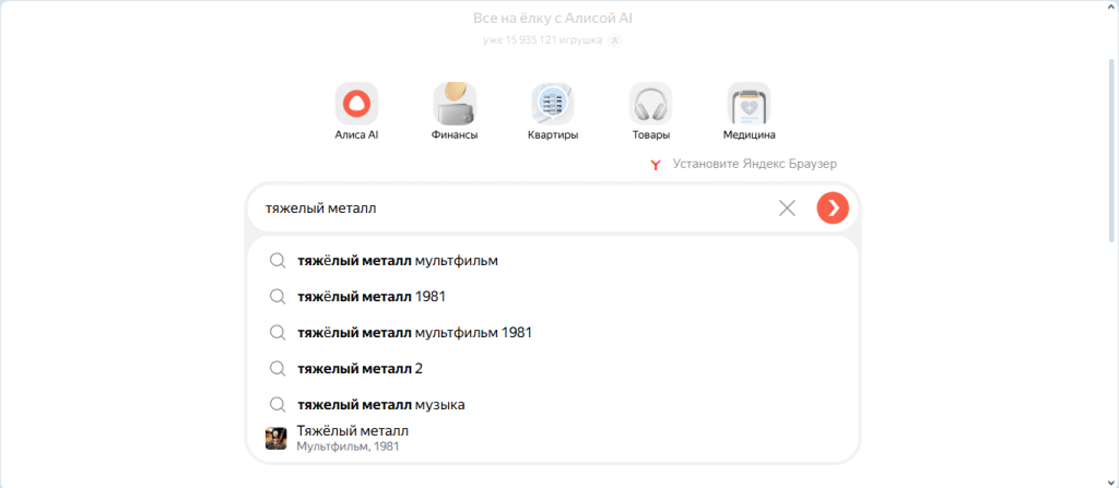 Например, по запросу «Тяжелый металл» Яндекс выдаст не только жанр музыки, но и мультфильм для взрослых 1981 года