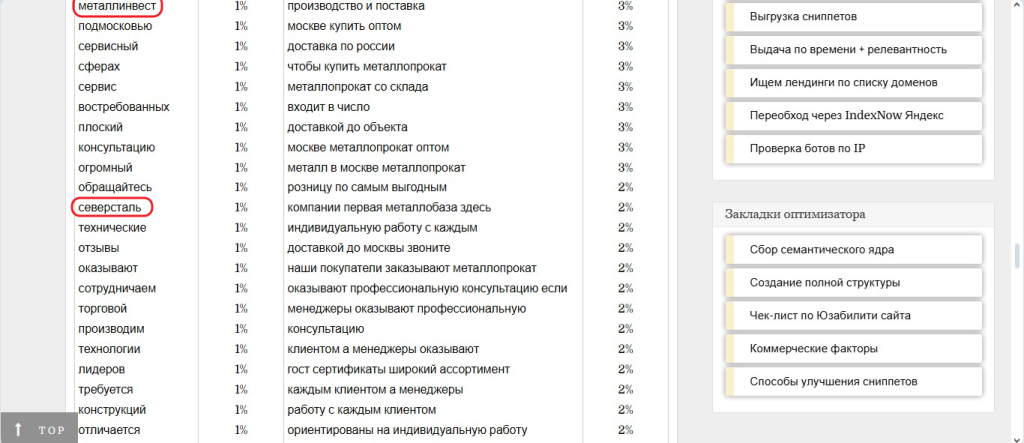 - Проверьте список на предмет слов, не относящихся к контексту. Например, это могут быть названия других компаний, выпускающих металлопрокат