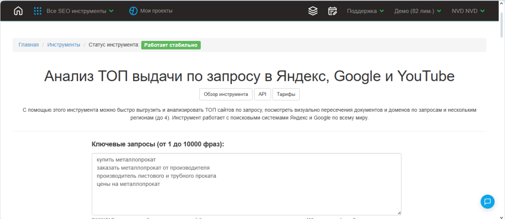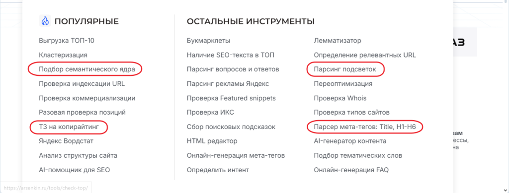 Например, Arsenkin предоставляет целый спектр инструментов для SEO-специалистов