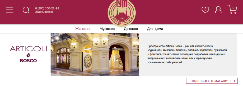 2. Ассортимент. Крайне важен, т.к. наверху выдачи в поиске находятся сетевые магазины, агрегаторы с колоссальным товарным рядом. Если увеличение продуктовой линии невозможно, то рекомендуется продвигаться, в том числе, через эти площадки. Раскрываем секреты! Если прочие факторы равны, то проект с большим ассортиментом вероятнее всего займет более высокую позицию в ранжировании. Что делать? Добавляем блок «Похожие товары». Или открываем ТОП-10 по Вашему запросу, убираем маркетплейсы, крупных продавцов (например, «Артиколи Боско» в ГУМ заявляет о множестве товаров из разных стран) и определяем сколько, в среднем, товаров у конкурентов. Если у нас меньше, то искусственно наращиваем ассортимент, продвигаем другую категорию, где у нас товаров больше. Или дополняем блок схожими артикулами (например, к синим велосипедам добавляем те же транспортные средства другого цвета). Так будет лучше, чем нехватка товарного ряда. Обширный ассортимент нужно структурировать вложенным меню, постоянно актуализировать, в том числе по количеству единиц, предлагаемых к продаже в текущий момент.